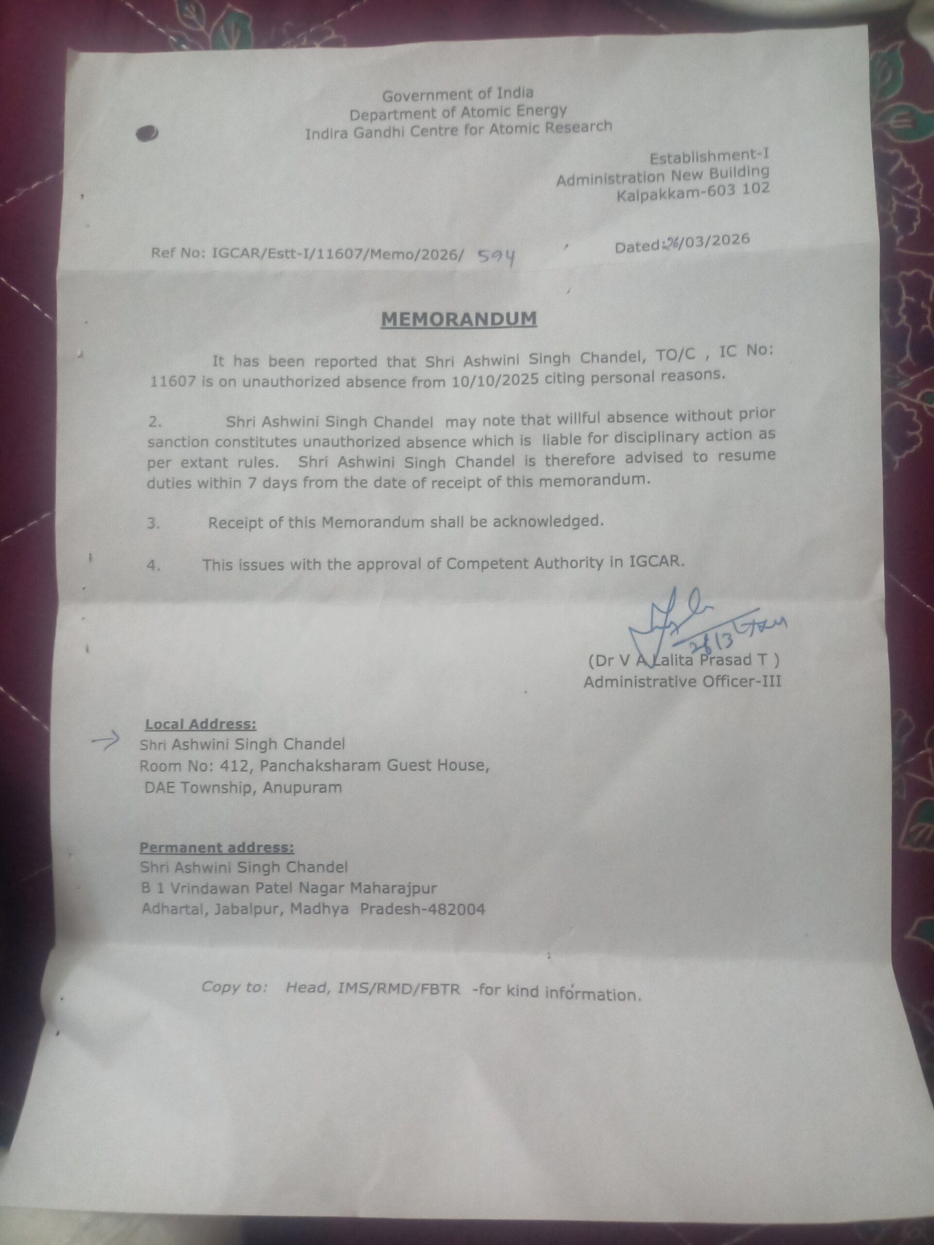 To: Recruitment, IGCAR <rd3@igcar.gov.in>, <apo4@igcar.gov.in>, <apo1@igcar.gov.in>, Kalyan <kalyan@igcar.gov.in>